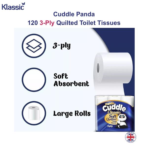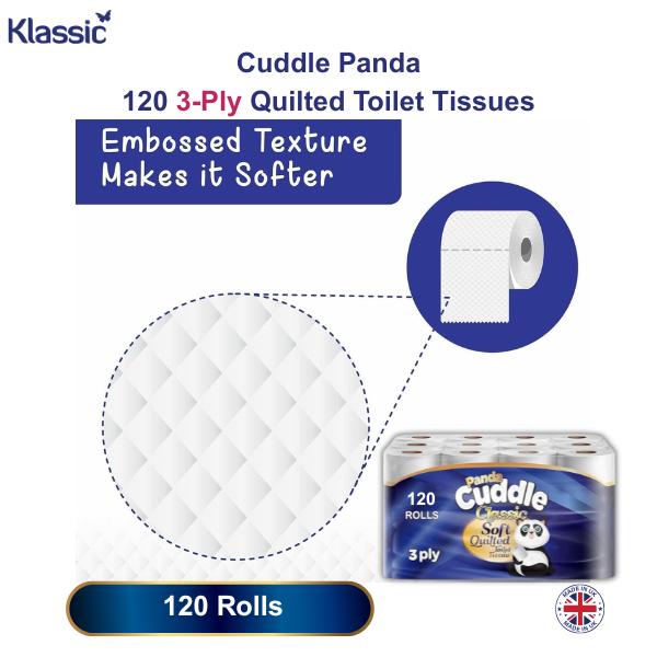 120 Rolls Panda Cuddle Classic Soft Quilted 3-Ply Toilet Tissue || Super Soft Luxurious Quilted Paper for Everyday Use. Luxury