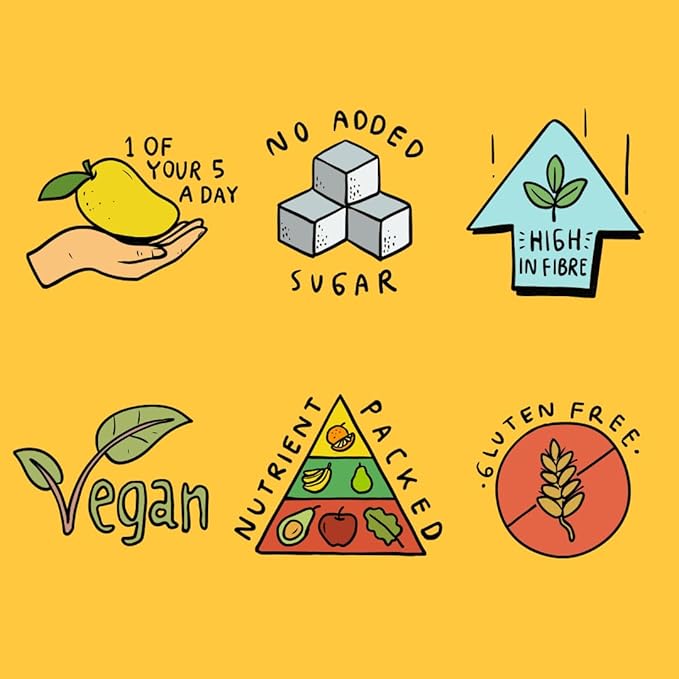 • SU100% FRUIT: Our superfruits are never baked or fried, just simply sliced and dried, with nothing ever added. No added sugar, sulphites or oils. Every bag retains all the dietary fibre and essential nutrients found in the fresh fruit. Naturally sweet, and jam packed with goodness – why add anything else!?