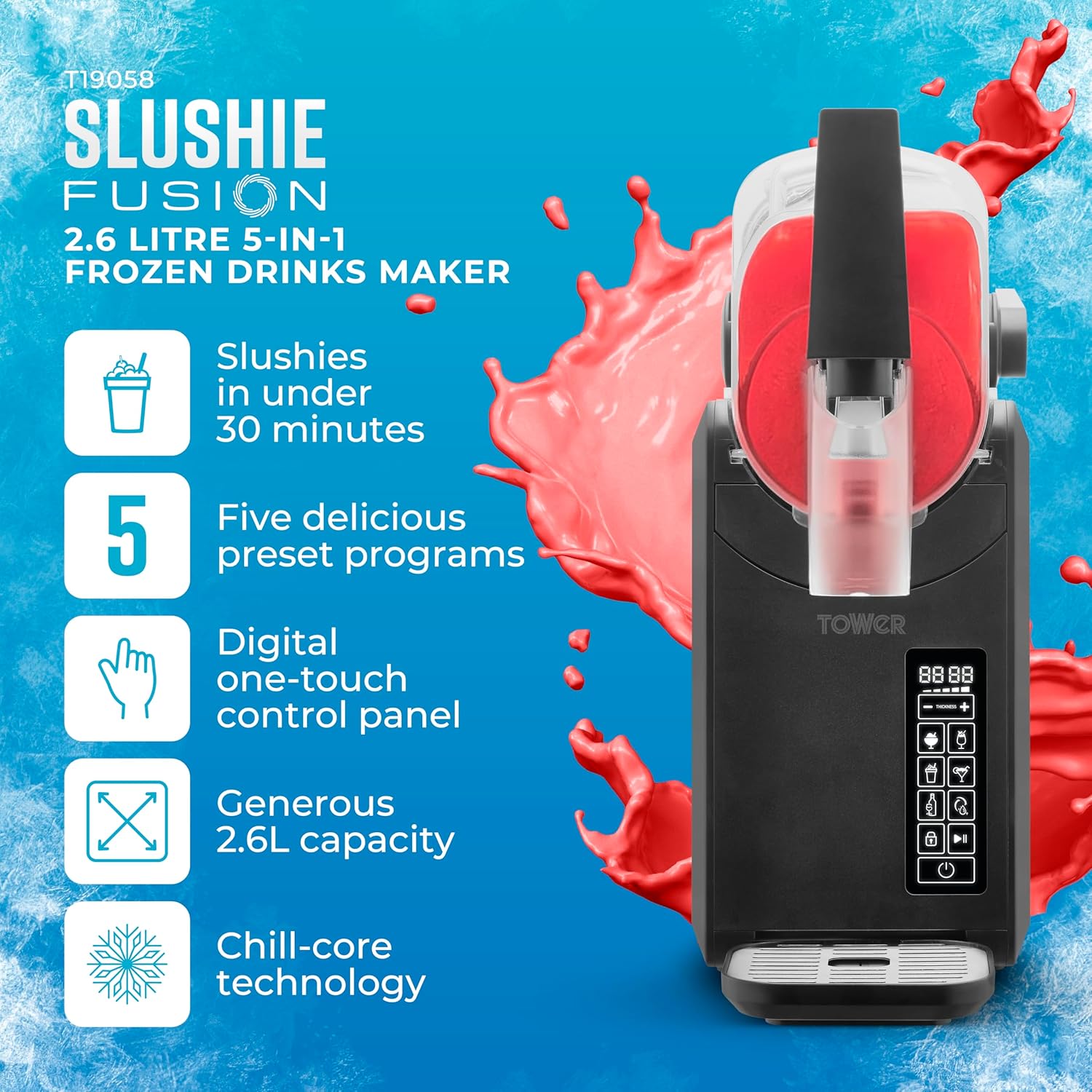 Tower T19058 Frozen Drink Slushie Maker with Digital Display, 220 W, Black
